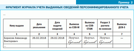 2. Завести специальный журнал учета выдачи документов. Утвержденной формы такого журнала нет, вы можете разработать любую удобную для вас учетную форму (пример 2).